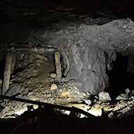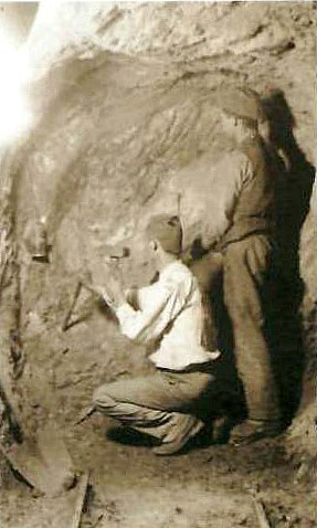 Fig. 5 | Operazioni di abbattimento in un cantiere minerario di inizio '900 - Foto da: A. Semplici, Bianca e sfolgorante appare la Rocca. Guida al parco archeominerario di San Silvestro, Ed. Parchi Val di Cornia, Gennaio 2011