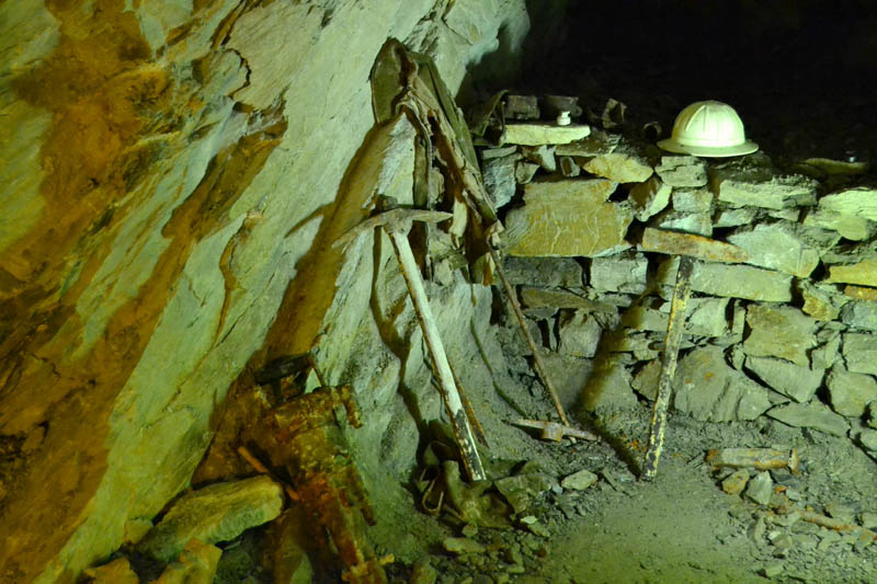 Fig. 5 | Operazioni di abbattimento in un cantiere minerario di inizio '900 - Foto da: A. Semplici, Bianca e sfolgorante appare la Rocca. Guida al parco archeominerario di San Silvestro, Ed. Parchi Val di Cornia, Gennaio 2011