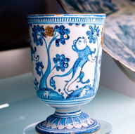 È la ceramica tipica della città emiliana di Faenza. Si tratta della cosiddetta maiolica (o “faenza smaltata”), ovvero ceramica dotata di un rivestimento vetroso opacizzato con l’ossido di stagno. L’arte ceramica faentina si afferma nel Medioevo e raggiunge l’apice del successo nel Cinquecento. Fra le decorazioni più comuni vi sono figure e fantasie geometriche, fitomorfe e zoomorfe, epigrafiche e araldiche; le colorazioni più diffuse sono verde, bruno e turchino su bianco smaltato.